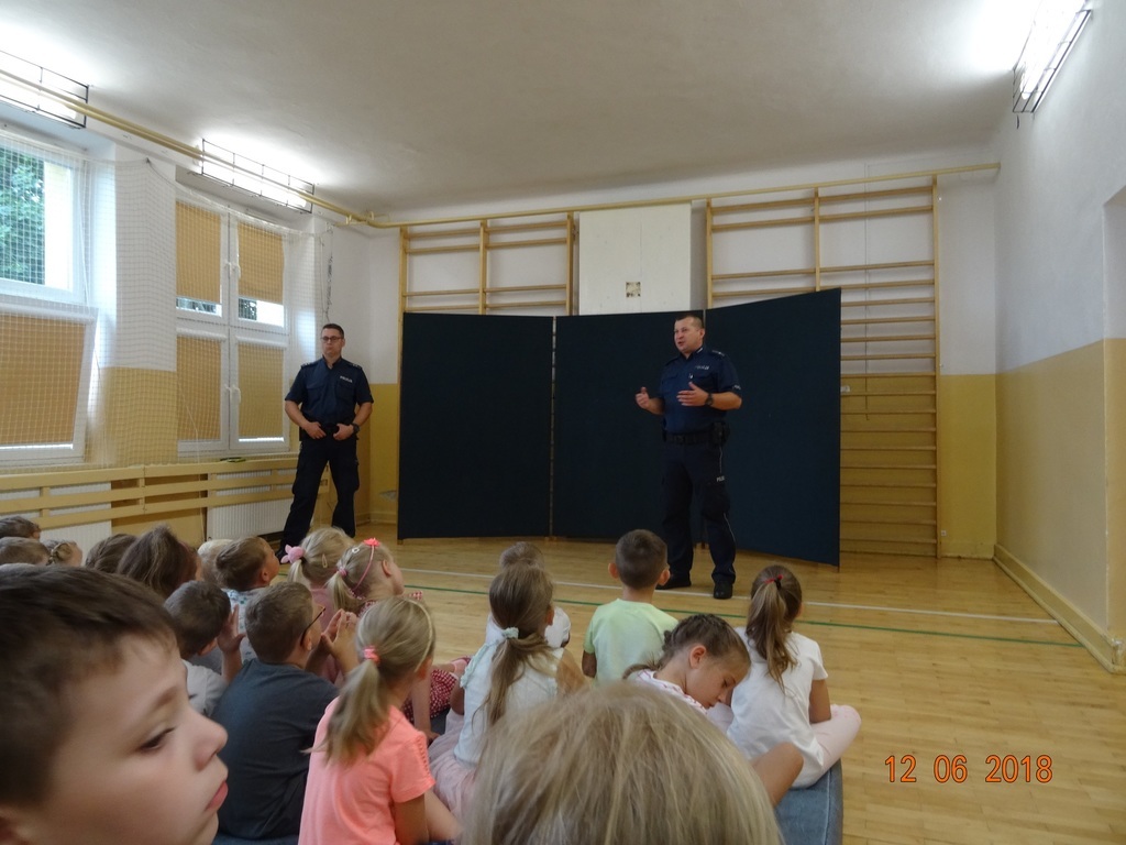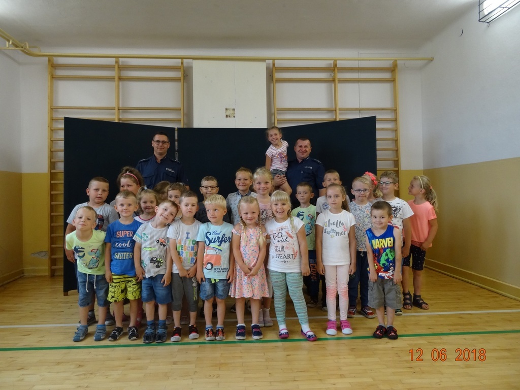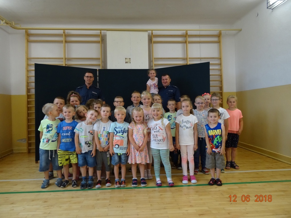 W dniu 12 czerwca odbyło się spotkanie z przedstawicielami policji z Komendy Powiatowej Policji w Kozienicach na temat zachowania bezpieczeństwa w czasie letniego wypoczynku nad wodą w czasie zbliżających się wakacji. Panowie policjanci przypomnieli także zgromadzonym uczniom i przedszkolakom podstawowe zasady bezpieczeństwa na drodze oraz życzyli zgromadzonym udanych, słonecznych wakacji. Dziękujemy bardzo za ciekawą pogadankę!