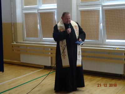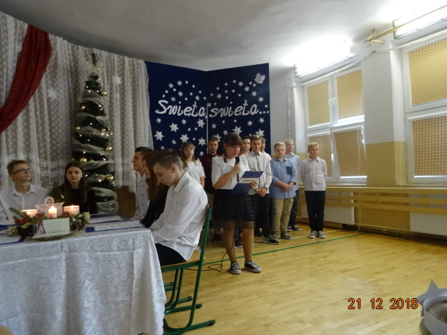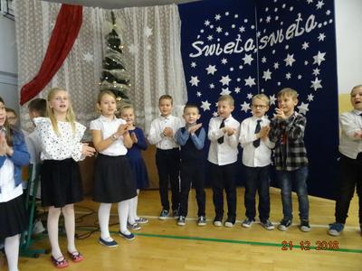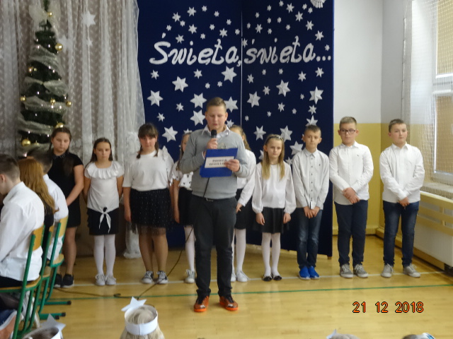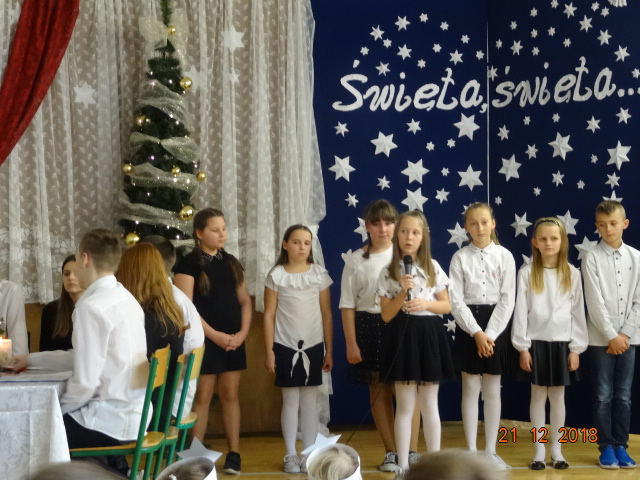 21 grudnia w czasie szkolnej Wigilii gościliśmy w szkole proboszcza parafii św. Katarzyny w Ryczywole, księdza Mieczysława Piaska, sołtysa Ryczywołu, pana Leszka Matuszewskiego, emerytowanych pracowników szkoły oraz przedstawicieli rady rodziców. Tegoroczne jasełka szkolne przygotowane przez ósmoklasistów były opisem tradycji świątecznych, głównie wigilijnych. Zgromadzeni mieli okazję przypomnieć sobie znaczenie wszystkich symboli związanych ze świętami Bożego Narodzenia. Wysłuchaliśmy wiele kolęd w wykonaniu solistów klasy IV, V i VIII jak i chórków z poszczególnych klas. Ksiądz odczytał fragment Ewangelii według św. Łukasza, a sołtys i pani dyrektor złożyli życzenia uczniom, nauczycielom i pozostałym zgromadzonym na sali. Chwil wzruszenia dostarczyli wszystkim najmłodsi uczestnicy jasełek, dzieci z oddziału przedszkolnego, śpiewając kolędę „Przybieżeli do Betlejem”. Dziękujemy p. R. Strzelczyk i p. H Boryczce za przygotowanie jasełek.