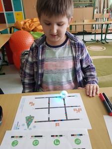 Ozoboty to również doskonała okazja do logicznego myślenia, o czym mógł się przekonać jeden z uczniów. Pozbieranie prezentów w taki sposób, aby robot nie szedł dwa razy tą sama drogą wymagało chwili skupienia....