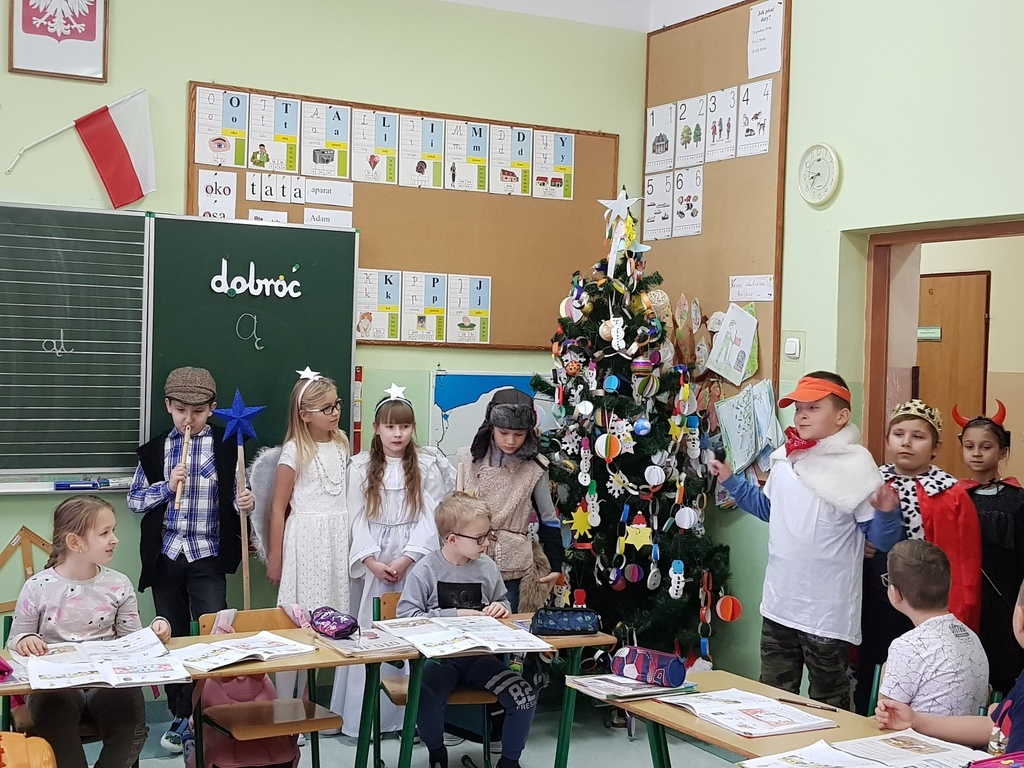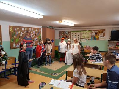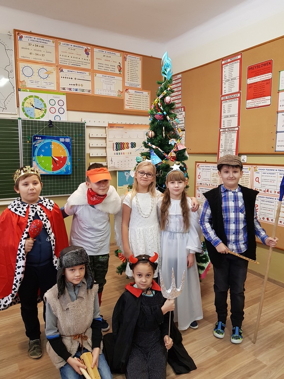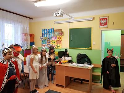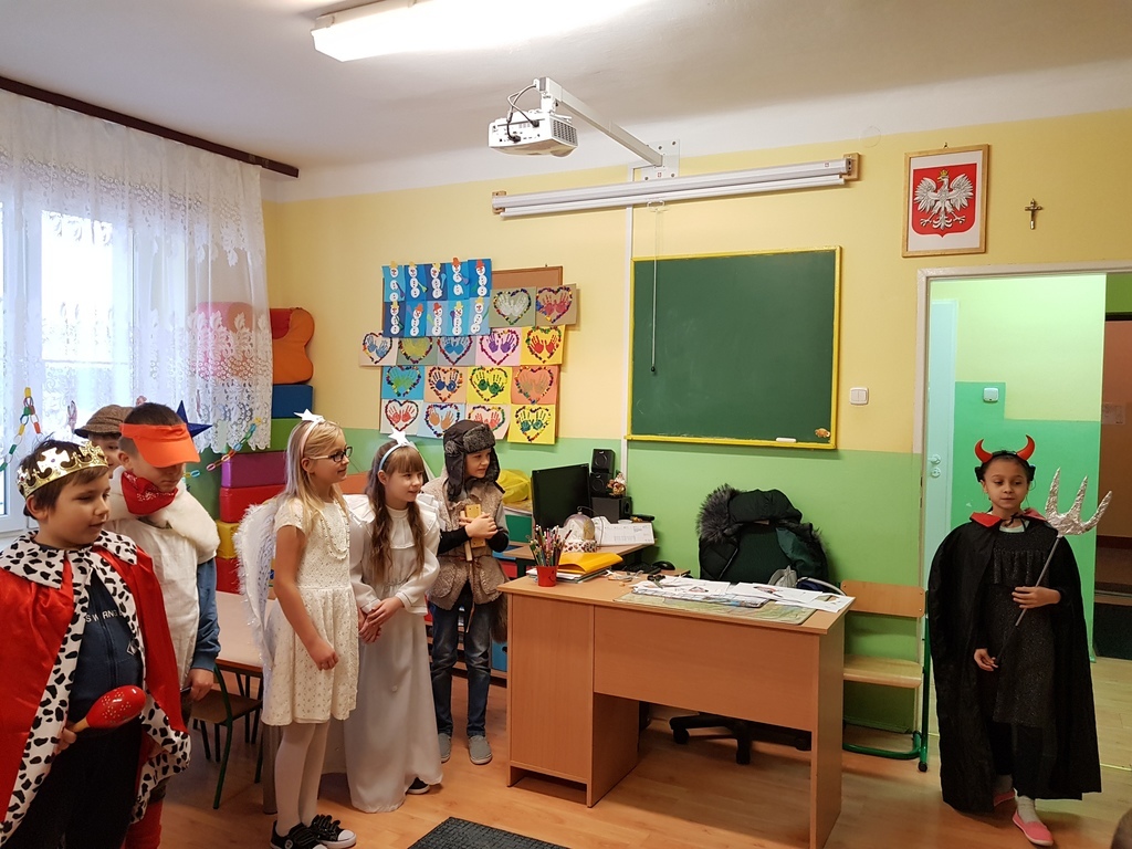 Po Nowym Roku rozpoczyna się karnawał, czyli czas świętowania, zabaw i balów. Dawniej nazywano go w Polsce zapustami. Jednym ze zwyczajów zapustnych był pochód wędrujących po domach przebierańców, zwanych kolędnikami. Uczniowie klasy III pod kierunkiem p. Miżejewskiej i p. Banaszek przygotowali krótką inscenizację pochodu kolędników. W czwartek 10 stycznia 2019r. przebierani za pasterza, dwa anioły, turonia,bociana, króla i diabła wędrowali po szkole i prezentowali ten zwyczaj dzieciom z przedszkola i zerówki oraz uczniom klas I,II, IV i V.