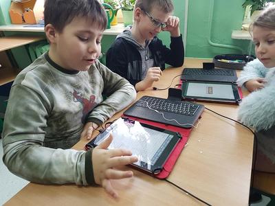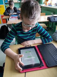W grudniu tytuł mistrza uzyskał Filip T., a w styczniu Wiktoria B.. W trakcie zajęć z tabletami uczniowie są na bieżąco oceniani i sami sprawdzają swoje wyniki. Najwięcej radości sprawia im rozwiązywanie różnego rodzaju łamigłówek i wykreślanek. Pracując z kartami pracy, mają możliwość samokontroli w słowniczkach ortograficznych, planszach i własnoręcznie wykonanych słownikach –zeszytach ortograficznych.