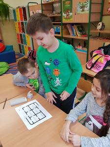 Luty natomiast przyniósł nowe zadania: tym razem Ozobot pokonywał labirynt, sprawdzał wiedzę o Orderze Uśmiechu, a także pomagał w przypomnieniu tabliczki mnożenia. Dodatkowo były zabawy z prowadzeniem dwóch robotów równocześnie, a to nie było łatwe, ponieważ nasz Evo czasem się buntował i nie chciał podążać wyznaczonym torem
