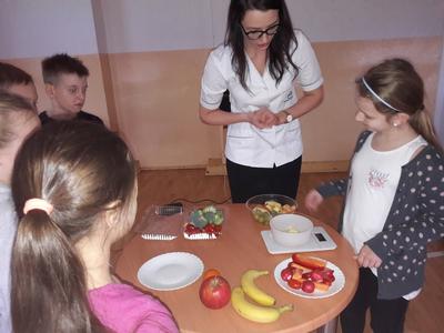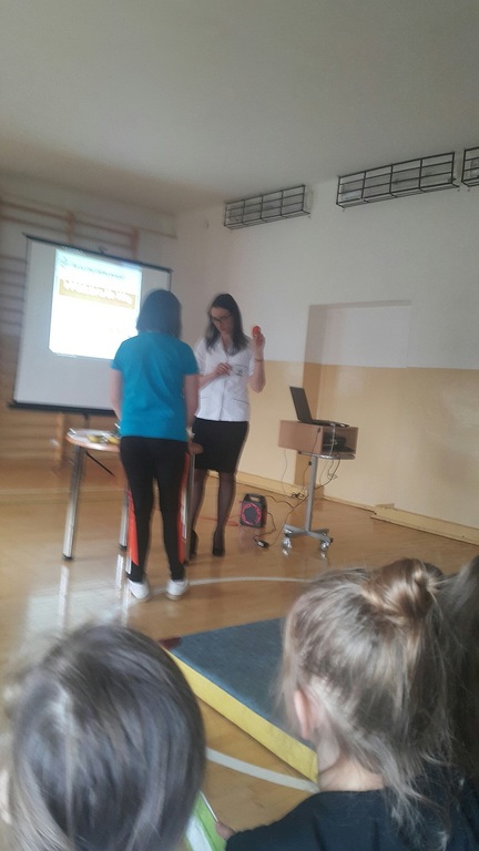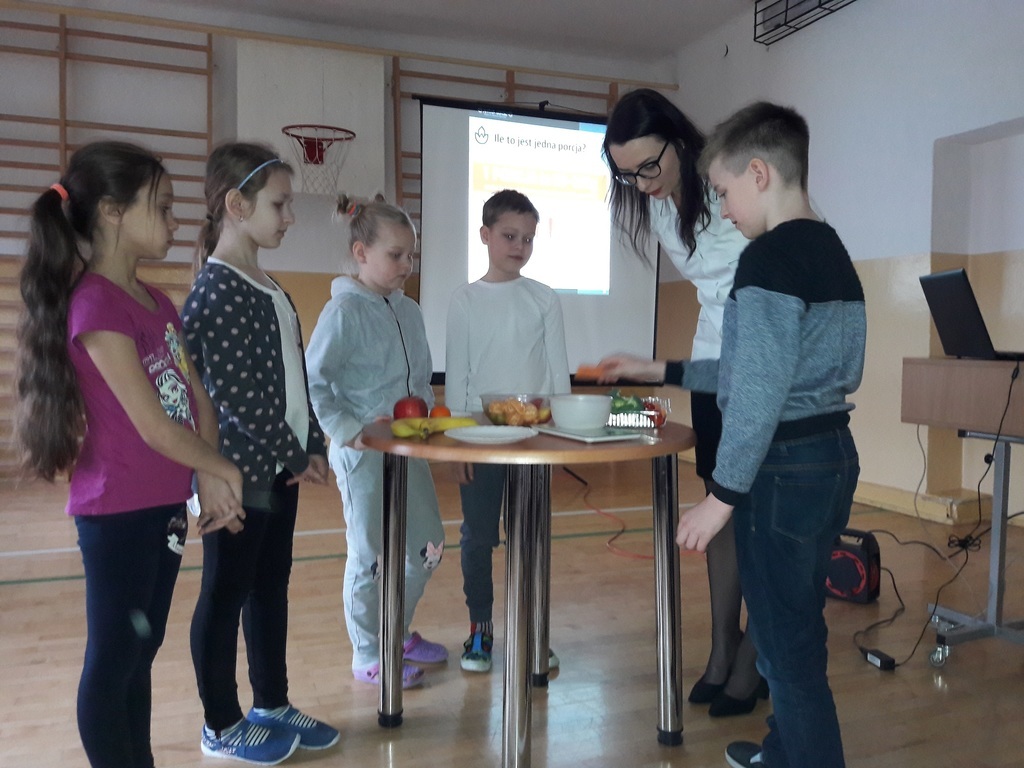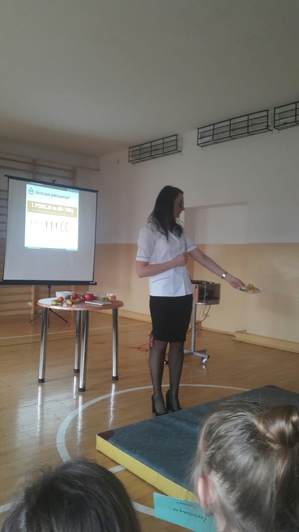 15 marca w naszej szkole odbyło się spotkanie z dietetykiem na temat zdrowego odżywiania się. Odbywało się w dwóch grupach dla uczniów młodszych i starszych. Wszyscy mieli okazję poznać zasady zdrowego stylu życia, ilość kalorii, jaka jest właściwa dla wieku oraz mieli okazję zważyć porcję owoców, jaką mogą dziennie spożywać. Uczniowie klas IV-VIII analizowali również piramidę zdrowego żywienia. To była bardzo pouczająca lekcja, zwłaszcza dla zwolenników słodyczy!