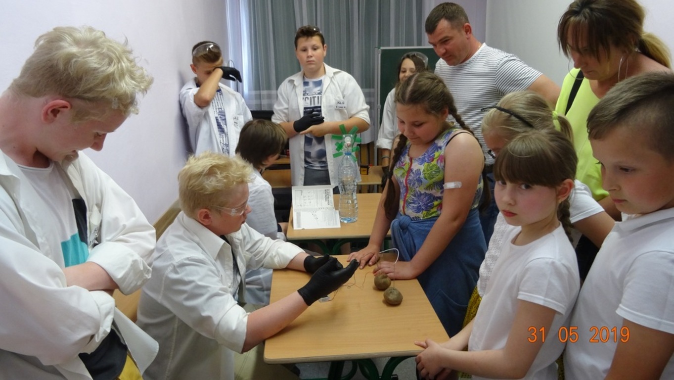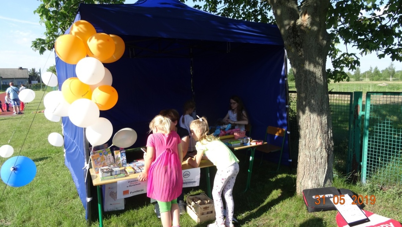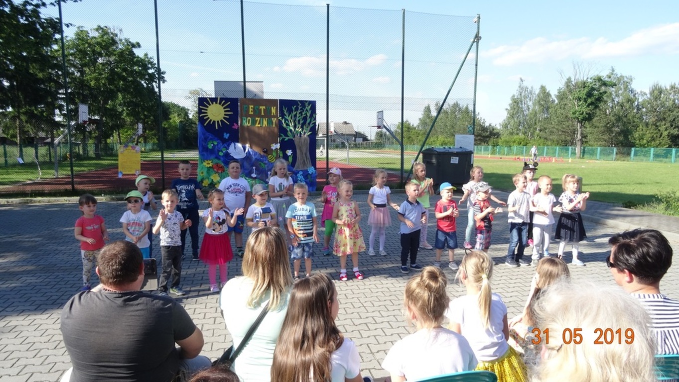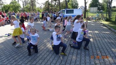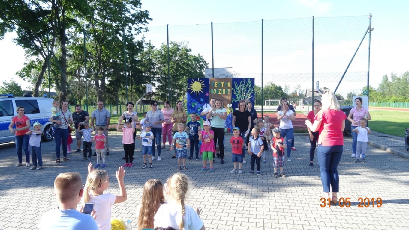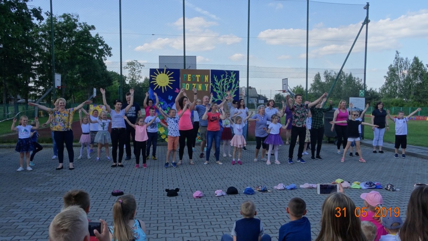 31 maja 2019 roku odbył się w naszej szkole Festyn Rodzinny z okazji ważnych świąt: Dnia Dziecka, Dnia Matki i Dnia Ojca. Na początku uroczystości wystąpiły dzieci z przedszkola i klas I-III, z grupy Foremka. Zaprezentowały tańce nowoczesne, walca oraz taniec integracyjny z członkami rodzin. Następnie wystąpiły dzieci z przedszkola i klasy 0, pod kierunkiem swoich pań również przedstawiły improwizację muzyczną popularnej piosenki „Czekolady” . Potem odbyły się różne konkurencje sportowe, mecze, przeciąganie liny, dla młodszych zabawy z chustą integracyjną. Zainteresowani gromadzili się także wokół stolików edukacyjnych, gdzie mogli prowadzić ciekawe doświadczenia, pod kierunkiem starszych kolegów i nauczycieli. Był stolik z ozobotami, matematyczny i biologiczny. Malowanie twarzy cieszyło się również dużym powodzeniem. Ci, którzy lubią rysować, mogli się wykazać w konkursie plastycznym pt. ”Jak spędzam czas ze swoją rodziną”, w nagrodę otrzymali pastele, których używali podczas pracy. W trakcie festynu promowany był zdrowy styl życia zarówno poprzez zabawy ruchowe, sportowe, jak i żywieniowe. Rodzice przygotowali zdrowy poczęstunek w postaci kanapek, owocowych przekąsek, ciasteczek i sałatek. Dla każdego ucznia była woda mineralna i lody. Chętni mogli kupić książeczkę za przysłowiową złotówkę. W festynie wzięła też udział współpracująca ze szkołą Filia nr 6 Biblioteki Publicznej Gminy Kozienice w Ryczywole, która przygotowała dla uczniów i ich rodziców szereg ciekawych zabaw i konkursów sprawdzających wiedzę z różnych dziedzin życia oraz rozwijających sprawność fizyczną. Zwycięzcy otrzymywali nagrody, a najmłodsi uczestnicy festynu cieszyli się z kolorowych balonów. W trakcie festynu zainteresowani uczniowie mieli okazję obejrzeć wnętrze karetki oraz samochodu policyjnego.