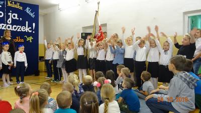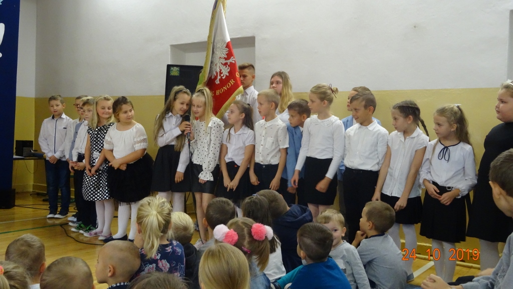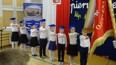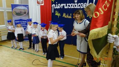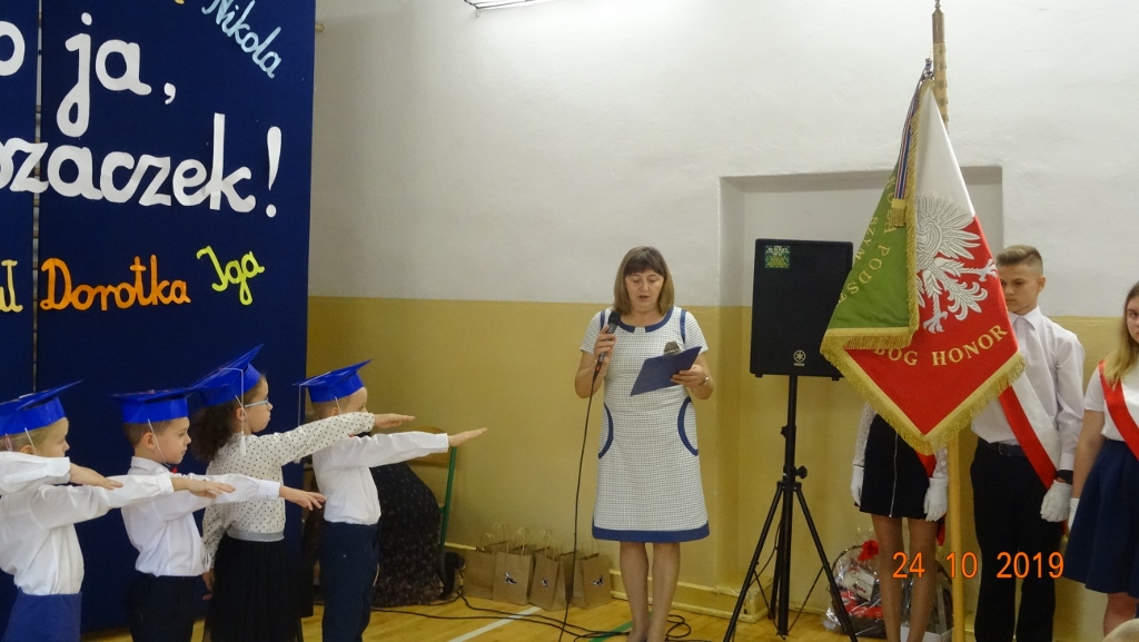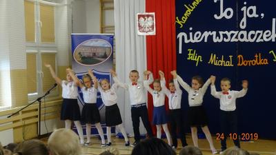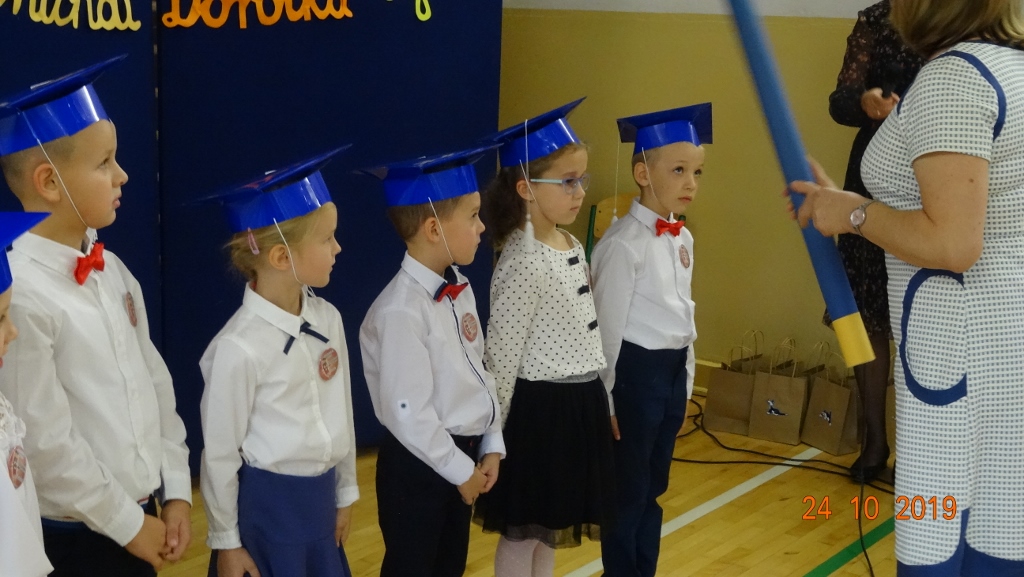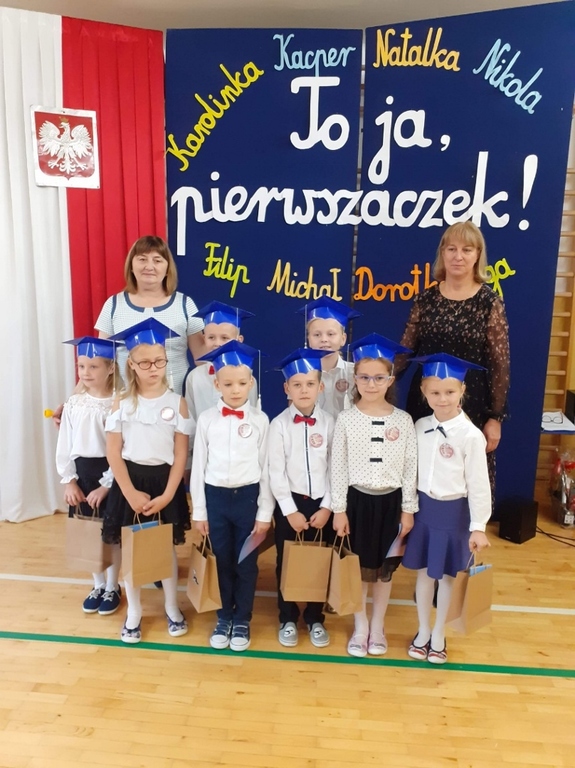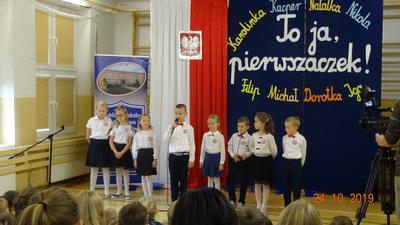 Pierwszoklasiści ze Szkoły Podstawowej im. chor. Jana Szymańskiego w Ryczywole są już pełnoprawnymi uczniami. 24 października 2019r. odbyło się uroczyste pasowanie na ucznia. Uroczystość prowadziła wychowawczyni klasy pierwszej p. Agnieszka Miżejewska. Powitała dyrekcję szkoły, nauczycieli, uczniów i rodziców. Zanim maluchy zostały przyjęte do grona społeczności szkolnej musiały przedstawić to, czego już się w szkole nauczyły. Gotowi, odświętnie ubrani i bardzo przejęci przystąpili do zaprezentowania przygotowanego programu artystycznego. Następnie po wprowadzeniu sztandaru i odśpiewaniu hymnu państwowego odbyła się część oficjalna. W podniosłej atmosferze, przed pocztem sztandarowym, pierwszacy ślubowali być dobrymi uczniami i kolegami, szanować nauczycieli i innych pracowników szkoły oraz dbać o książki, zeszyty i przybory szkolne. Po złożeniu ślubowania pani dyrektor Marianna Fusiek dokonała pasowania na ucznia dotykając wielkim piórem, jak rycerskim mieczem, ramion pierwszoklasistów. Po ceremonii pasowania na ucznia każdy pierwszak dostał legitymację szkolną i pamiątkowy dyplom. Niespodziankę swoim młodszym kolegom sprawili uczniowie klas II, którzy pod kierunkiem p. Haliny Boryczki przygotowali dla nich dobre rady oraz wręczyli własnoręcznie wykonane zakładki do książek. Życzenia i upominki otrzymali także od Samorządu Uczniowskiego i rodziców. Zgodnie z tradycją szkoły po części oficjalnej wychowawczyni zaprosiła p. Dyrektor, rodziców i pierwszaków do zasadzenia przed szkołą zakupionej przez rodziców rośliny. Po zasadzeniu róży wszyscy udali się na słodki poczęstunek przygotowany przez rodziców. Drodzy Pierwszoklasiści! Życzymy Wam wielu sukcesów w nauce i powodów do radości!