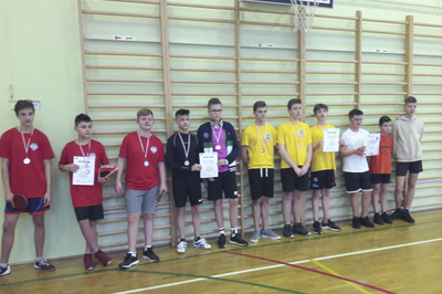 W sobotę 12 grudnia 2020r. w Publicznej Szkoły Podstawowej im. bp. Jana Chrapka w Świerżach Górnych odbyły się Mistrzostwa Gminy Kozienice w tenisie stołowym chłopców. W zawodach wzięło udział siedem drużyn ze szkół podstawowych Gminy Kozienice. Naszą szkołę reprezentowali uczniowie ósmej klasy: Jakub Słomski, Jakub Skotak i Dominik Drewnik. Zawody rozegrane zostały w dwóch grupach. Chłopcy po wyrównanej walce w półfinale zdobyli III miejsce!