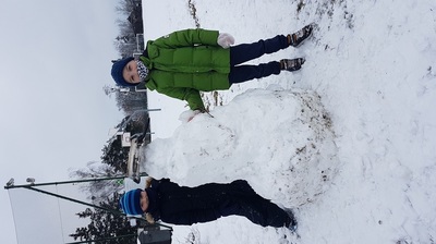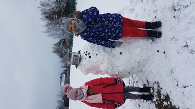 Nareszcie mamy typową aurę zimową! Temperatury tylko trochę poniżej zera, dużo, dużo śniegu! Wielka radość wśród dzieci! Mogą wykazać się swoimi śnieżnymi bałwanami.