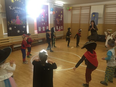 Karnawał to miła tradycja, przepełniona muzyką i zabawą, gdzie ważnym elementem tego okresu są bale. Bal karnawałowy dla przedszkolaków to niezwykły, długo wyczekiwany dzień. Jest atrakcją bardzo lubianą przez dzieci, dostarczającą im wielu przeżyć i radości. Tak też było w czwartek 28stycznia. Nie zabrakło księżniczek, wróżek, dinozaurów, piratów, policjantów, Spider-Mana, Batmana i wiele innych postaci. Rozpoznać dzieci było bardzo trudno! Przedszkolaki świetnie się bawiły przy rytmicznej i skocznej muzyce. Na sali, podczas pląsów, było bardzo wesoło oraz kolorowo. Uśmiech nie znikał z dziecięcych twarzy. Nie zabrakło również konkursów, w których przedszkolaki chętnie uczestniczyły, dopingując się nawzajem.