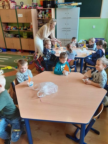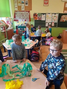 Miniony tydzień w klasie „0” upłynął na zajęciach związanych z tematyką jesiennej pogody pt. „W co się bawi z nami jesienny wiatr”. Zerówkowicze dowiedzieli się, jaka jest rola wiatru w życiu roślin i ludzi. Do czego jest wykorzystywany wiatr by ułatwić człowiekowi życie. Dzieci poznały, jak powstaje energia z wiatru oraz, jak ją oszczędzać. Dowiedziały się także o niszczycielskiej sile wiatru i czy można się przed skutkami wiatru zabezpieczyć. Podczas zajęć twórczych konstruowały urządzenia takie jak: rękaw powietrzny, czy wiatromierz, które stosuje się do pomiaru wiatru. Podczas zajęć na świeżym powietrzu miały okazję do testowania stworzonych przez siebie modeli. Tematyka zajęć minionego tygodnia wzbudziła duże zainteresowanie wśród dzieci, rozwinęła ich inwencję twórczą. Dzieci z dużym zaangażowaniem uczestniczyły w zajęciach dzięki, którym wzbogaciły swoją wiedzę o czynnikach atmosferycznych.