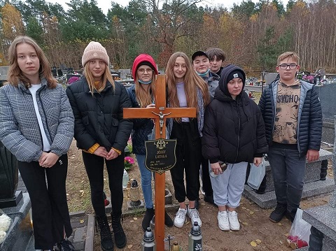 Ta historia sięga lat 50-tych. Wówczas do wsi Kraski Górne został skierowany do pracy Józef Latała. W tamtych latach był jedynym nauczycielem, miał może 25 lat. Dzieci bardzo go lubiły. Niestety jego praca nie trwała zbyt długo, bo od września 1953r. do maja 1954r. Zmarł tragicznie porwany przez wir Wisły podczas kąpieli. Został pochowany na cmentarzu w Ryczywole, ponieważ Kraski wówczas należały do tej parafii. Pochodził z gór i oprócz babci nie miał bliskiej rodziny. Po śmierci z upływem czasu jego grób zaczął popadać w zapomnienie, uczniowie poumierali, bądź zapomnieli. W Ryczywole zostało dwoje Jego uczniów, którzy pochodzili z Krasek - p.Ryszard Wojdyr i jego siostra Stefania Felner. To właśnie od nich wiemy o zmarłym nauczycielu. Od wielu lat grobem opiekuje się katechetka p. Renata Strzelczyk wraz z p. Danutą Matysiak. Każdego roku stara się z uczniami naszej szkoły odwiedzić grób zmarłego nauczyciela i przekazać o nim informację. W tym roku zrobiła to z uczniami kl.7, a towarzyszyła im uczennica kl.4 Amelka Matysiak z rodzicami.