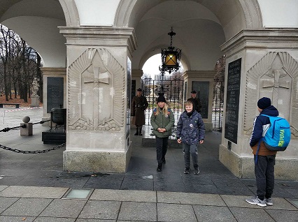 Następnie przejechaliśmy do Warszawy, gdzie przy Grobie Nieznanego Żołnierza oddaliśmy hołd żołnierzom poległym w obronie ojczyzny.