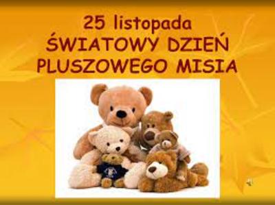 W dniu 25 listopada zerówkowicze i młodsza grupa przedszkolna uczestniczyły w obchodach Światowego Dnia Pluszowego Misia. Mimo coraz nowocześniejszych i coraz atrakcyjniejszych zabawek, moda na misie nie przemija. Tego dnia dzieci, opowiadały o swoich maskotkach, słuchały czytanych przez panią fragmentów książek o niedźwiadkach,
