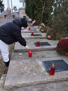 Listopad jest takim miesiącem, który w sposób szczególny skłania nas Polaków do zadumy. Najpierw obchodzimy Zaduszki, a potem Narodowe Święto Niepodległości. Wracamy pamięcią ku naszym ukochanym zmarłym, lecz również szczególną wdzięczność wyrażamy żołnierzom poległym na frontach dwóch wojen światowych. Dlatego uczniowie naszej szkoły pamiętają o mogile chor. Jana Szymańskiego, patrona naszej szkoły, która znajduje się w Kwaterze Wojska Polskiego na cmentarzu w Magnuszewie. W tym roku w imieniu Samorządu Uczniowskiego znicz zapaliła przewodnicząca Judyta Nakończy oraz uczeń kl. 3 Kacper Matysiak.