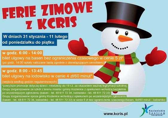 Ferie zimowe z KCRiS Zapraszamy do zapoznania się z programem ferii zimowych z KCRiS w Kozienicach. Zdjęcia Zobacz również SZKOLNY KONKURS ORTOGRAFICZNY 2021/2022 dla klas... Szkolne kolędowanie Życzenia świąteczne Ferie zimowe z KCRiS FERIE ZIMOWE Warsztaty dla Samorządu Uczniowskiego 20 stycznia 2022 Aktualności Wydrukuj Udostępnij Wyświetlono: 147