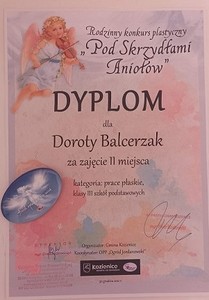 Troje uczniów z klasy trzeciej: Michał Bogumił, Filip Nędzi i Dorotka Balcerzak odniosło sukces w rodzinnym gminnym konkursie plastycznym pt. „Pod skrzydłami Aniołów" zorganizowanym przez Gminę Kozienice oraz OPP "Ogród Jordanowski".