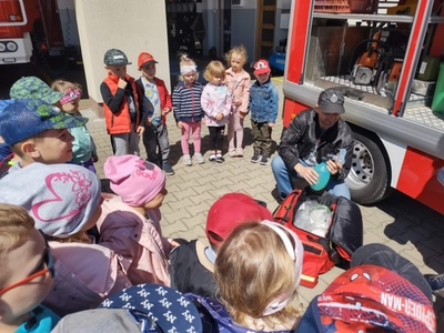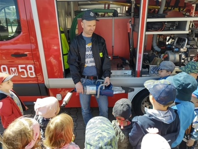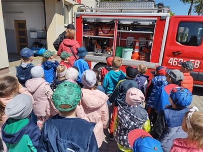 Dnia 9 mają 2022 r. grupy przedszkolne wybrały się na wycieczkę do Ochotniczej Straży Pożarnej w Ryczywole. Dzieci z wielkim zainteresowaniem słuchały opowiadania pana Piotra Majewskiego o pracy strażaków, oglądały sprzęt strażacki, zadawały wiele pytań i wdzięcznie pozowały do zdjęć. Na zakończenie wycieczki, dzieci przekazały życzenia dla wszystkich strażaków i wręczyły laurki z okazji ich święta.