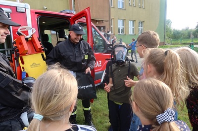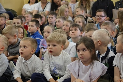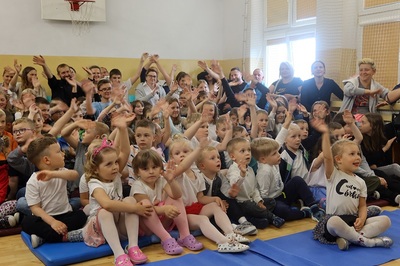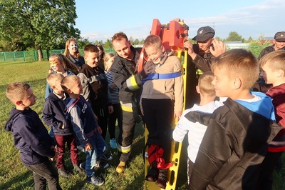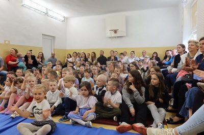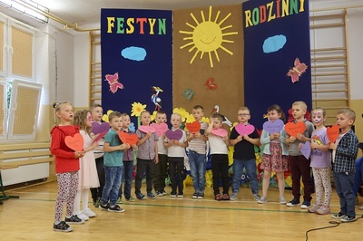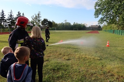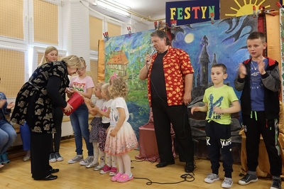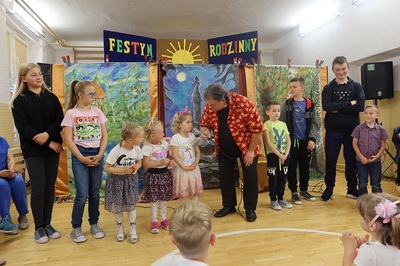 Festyn Rodzinny jest imprezą, która już mocno wpisała się w tradycję naszej szkoły i jest oczekiwana z niecierpliwością przez dzieci, ich rodziców i nauczycieli. Po dwóch latach przerwy wymuszonej przez pandemię, znów byliśmy razem. 27 maja 2022r. na terenie szkoły odbył się Festyn Rodzinny. Rodzinne spotkanie rozpoczęło się powitaniem gości przez dyrektor szkoły panią Mariannę Fusiek, która przekazała głos pani Mariannie Wychockiej odpowiedzialnej za całość imprezy. Specjalnie na tę okazję zostały przygotowane liczne atrakcje. Na początku wystąpili aktorzy z teatrzyku profilaktycznego ,,Teatr” z Krakowa, którzy swoim występem wszystkich wprowadzili w dobry nastrój, wywołali uśmiech na twarzach dzieci i dorosłych i zachęcili do wspaniałej zabawy. Na festynie nie mogło zabraknąć prezentacji uczniów naszej szkoły. W krótkich programach słowno -muzycznych i tanecznych wystąpiła grupa przedszkolna i oddział przedszkolny. Piękne występy zostały nagrodzone gorącymi brawami, co było największym wyróżnieniem dla małych artystów. Dużym zainteresowaniem cieszyły się stoliki dydaktyczno- interaktywne z niespodziankami oraz konkurs plastyczny. Ogromnym powodzeniem cieszyło się stoisko ,,Artystyczne malowanie twarzy”. Malowanie buziek wykonywała mama uczniów naszej szkoły. Na sali gimnastycznej odbywały się gry i zabawy przy muzyce, w których uczestniczyli mali i dorośli. Odbyły się również warsztaty ,, Pierwsza pomoc”. Można było również skorzystać z małej gastronomii przygotowanej przez rodziców: gofry, słodkie przekąski,owoce, soki i woda.Atrakcją wieńczącą nasz festyn było pojawienie się wozu strażackiego Ochotniczej Straży Pożarnej z Ryczywołu, który zaznaczył swoją obecność głośną sygnalizacją, co wzbudziło duże zainteresowanie ze strony Naszych gości. Strażacy we wspaniały sposób podsumowali rodzinne święto prezentując sprzęt oraz wnętrze samochodu i umożliwiając milusińskim zrobienie sobie zdjęć. W tym dniu każdy miał okazję poczuć się jak prawdziwy strażak, wejść do wozu, „ugasić” pożar poprzez trafianie strumieniem wody do celu. Podczas imprezy panowała miła i pogodna atmosfera. Zorganizowany festyn spełnił oczekiwania jego organizatorów, dzieci i rodziców uczestniczących w zabawie. Serdecznie dziękujemy wszystkim tym, którzy poprzez swoją obecność oraz zaangażowanie przyczynili się do cudownie spędzonego czasu.