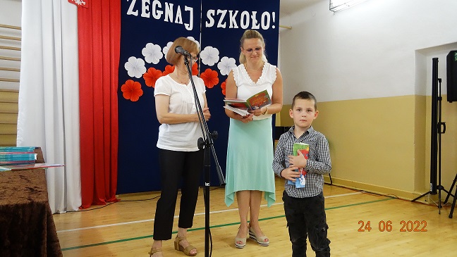 Nagrody książkowe otrzymali także najlepsi czytelnicy w roku szkolnym 2021/2022: uczeń kasy pierwszej Hubert Balcerzak oraz uczeń klasy szóstej Julian Kluczek.