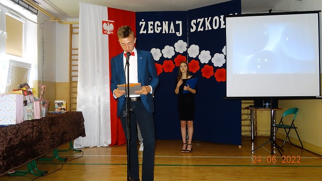 Kolejną częścią wydarzenia było rozdanie świadectw ósmoklasistom, którzy zakończyli naukę w Szkole Podstawowej. Uczniowie klasy ósmej przygotowali program pożegnalny, podczas którego podsumowali osiem lat nauki w murach Szkoły Podstawowej w Ryczywole.
