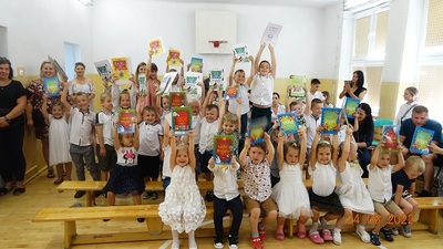 Następnie Pani Dyrektor wręczyła wszystkim uczniom klasy pierwszej oraz wyróżniającym się uczniom klas 2-3 nagrody książkowe ufundowane przez Radę Rodziców.