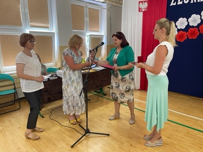 Pani Dyrektor serdecznie przywitał zebranych oraz podziękował im za ciężką i wytrwałą pracę. W kilku zdaniach podsumowała zakończony rok szkolny.