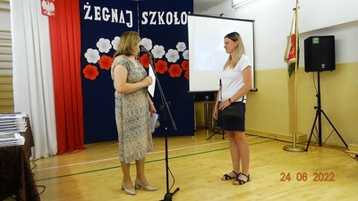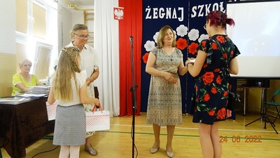 Na zakończenie Pani Dyrektor życzyła wszystkim wspaniałych, a przede wszystkim bezpiecznych wakacji. Po części oficjalnej uczniowie przeszli do sal, aby z rąk wychowawców odebrać świadectwa i pożegnać się z kolegami, koleżankami oraz nauczycielami.
