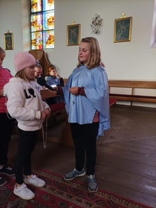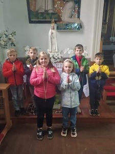 Nabożeństwo różańcowe to nabożeństwo maryjne, które zostało wprowadzone przez papieża Leona XIII w 1883r. W Kościele katolickim jest odprawiane codziennie w październiku (październik to miesiąc różańca). W tym roku szkolnym i katechetycznym po raz kolejny bierzemy udział w rozważaniach różańcowych wraz z uczniami naszej szkoły w szczególności kl. 3 przygotowującej się do przyjęcia Pierwszej Komunii Świętej.