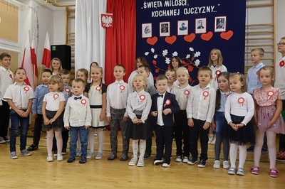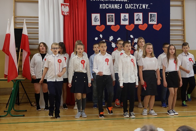 Na początku wszyscy zebrani na uroczystości uczniowie wraz z nauczycielami i pracownikami szkoły odśpiewali hymn Polski, biorąc tym samym udział w ogólnopolskiej akcji "Szkoła do hymnu". Następnie uczniowie klasy piątej przypomnieli niektóre wydarzenia i postaci z historii naszego kraju związane z walką Polaków o niepodległość. Zaprezentowali też okolicznościowe wiersze i pieśni. Na koniec spróbowali uświadomić zebranym, co to znaczy kochać Ojczyznę. Akademię zakończył recytowany przez przedszkolaków z zerówki " Wiersz na 11 listopada".