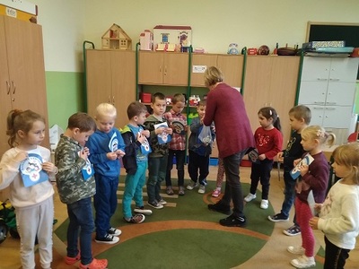 Dnia 16 listopada 2022 r. w oddziale przedszkolnym przeprowadzona została akcja "Radosny uśmiech - radosna przyszłość" pod patronatem PCK. Dzieci obejrzały film instruktażowy, otrzymały kalendarze, w których będą systematycznie zaznaczać fakt umycia zębów, a także butony z logo programu.