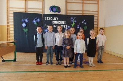 W ostatni czwartek przed feriami zimowymi, czyli 9 lutego odbył się Szkolny Konkurs Recytatorski. Wzięło w nim udział 31 uczniów z dwóch oddziałów przedszkolnych i klas I-VIII. Każdy z nich recytował jeden wiersz polskiego autora. Jury w składzie: pani Małgorzata Piórecka, pani Marianna Kacprzak, pani Agnieszka Miżejewska i pani Halina Boryczka zdecydowało, że w eliminacjach środowiskowych w Kozienicach wezmą udział następujące osoby: