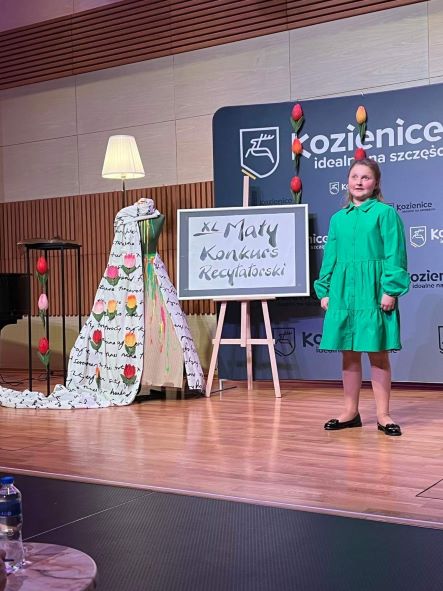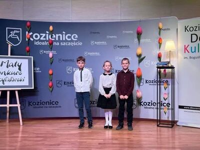 Uczniowie z naszej szkoły i oddziału zerowego wzięli udział w eliminacjach środowiskowych do XL Małego Konkursu Recytatorskiego. Młodzi mistrzowie słowa spotkali się we wtorek, 21 marca w Kozienickim Domu Kultury im. Bogusława Klimczuka, a najlepsi z nich wywalczyli awans do kolejnego etapu, czyli kwalifikacji powiatowych.Na scenie sali kameralnej Centrum Kulturalno-Artystycznego zaprezentowali się najmłodsi uczestnicy dzisiejszych eliminacji, czyli reprezentanci przedszkoli i „zerówek”- z naszego oddziału "O" Luiza Jemiołek- Nowakowska. Kolejni prezentowali się uczniowie klas I-IV - z naszej placówki: Ewelina Wójcik, Hubert Balcerzak, Krzysztof Ochmański, a na końcu na scenie pojawili się najstarsi uczestnicy, czyli uczniowie klas V-VIII - Hanna Strzelczyk.Zadaniem uczestników była prezentacja dwóch utworów polskich poetów. Ich występy oceniało trzyosobowe jury w składzie: nauczyciel języka polskiego w I Liceum Ogólnokształcącym im. Stefana Czarnieckiego w Kozienicach Beata Smykiewicz-Różycka, nauczyciel języka polskiego w Zespole Szkół nr 1 im. Legionów Polskich w Kozienicach Izabela Kęska-Cieślik oraz nauczyciel języka polskiego, wykładowca literatury i filozofii, poeta Krzysztof Kaim.Pod uwagę brane były: dobór repertuaru, interpretacja utworów, kultura słowa i ogólny wyraz artystyczny. Myślą przewodnią konkursu jest rozbudzanie wrażliwości dzieci na kulturę słowa i piękno języka polskiego, a zarazem poszerzanie ich wiedzy na temat rodzimej literatury.Na każdego uczestnika czekał pamiątkowy dyplom, wyróżnienie dla Luizy Jemiołek- Nowakowskiej, a do kolejnego etapu konkursu zakwalifikowała się Hanna Strzelczyk, serdecznie gratulujemy!