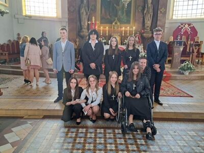 4 maja 2023r. o godz. 17.00 w kościele p.w. Św. Bartłomieja w Brzózie uczniowie klasy 8 przyjęli Sakrament Bierzmowania z rąk biskupa Marka Solarczyka.