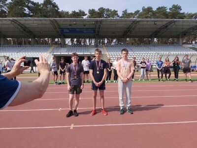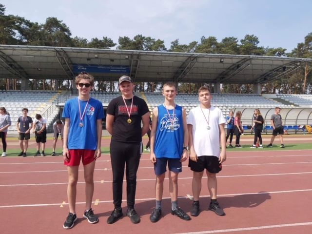 II miejsce i srebrny medal Michała Strzelczyka w pchnięciu kulą chłopców