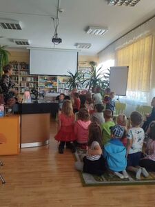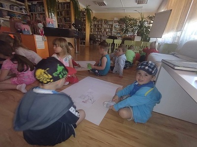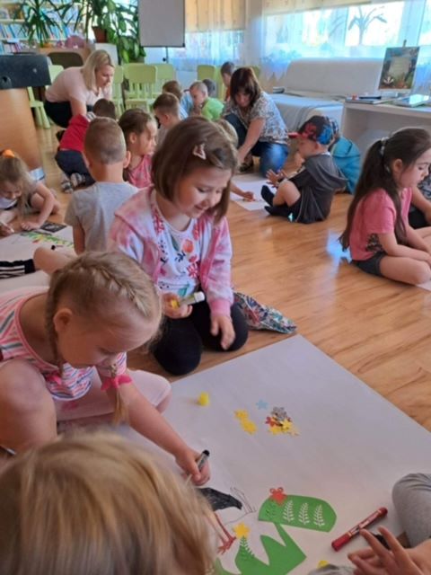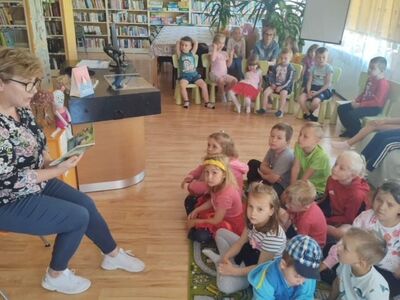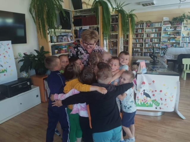 31 maja 2023 r. dzieci z oddziałów przedszkolnych odwiedziły ryczywolską filię Biblioteki Publicznej Gminy Kozienice. Już w samym wejściu przywitała dzieci pani bibliotekarka Beata Bogumił, która przybliżyła dzieciom na czym polega praca bibliotekarza. Dzieci z zainteresowaniem wysłuchały czytanej bajki o bocianku Franku. Wykonały w grupach piękne ilustracje do wysłuchanej bajki. Zajrzały w każdy kąt biblioteki. Na pożegnanie p. Beata obdarzyła dzieci i opiekunki upominkami (zakładkami do książek, długopisami, świeczkami ręcznie robionymi). Przedszkolaki obiecały pani bibliotekarce, że będą odwiedzać bibliotekę częściej. To był naprawdę mile spędzony czas. Dziękujemy 🙂!