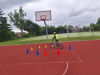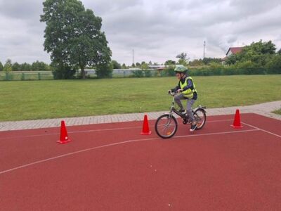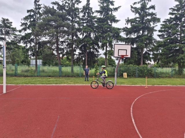 2 czerwca 2023r. w naszej szkole odbył się praktyczny egzamin na kartę rowerową. Dzieci, aby uzyskać swoje pierwsze uprawnienia do kierowania rowerem, musiały wykazać się znajomością przepisów w ruchu drogowym oraz umiejętnością prawidłowej techniki jazdy. W tym celu uczniowie mieli do pokonania na jednośladzie wyznaczony tor przeszkód. Wszyscy bardzo poważnie potraktowali egzamin, co widać było po stresie i emocjach, jakie im towarzyszyły podczas ubiegania się o swój pierwszy dokument upoważniający do poruszania się rowerem po drogach publicznych. Wszyscy zgłoszeni do egzaminu uczniowie klasy IV ukończyli rowerowy tor przeszkód z pozytywnym wynikiem. Młodym kierowcom jednośladów życzymy szerokiej drogi i bezpiecznych wakacji.