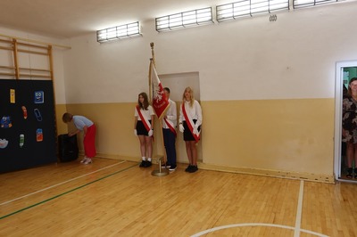 Na zakończenie uroczystości Pani dyrektor przypomniała o zasadach bezpieczeństwa obowiązujących na terenie placówki. Po części oficjalnej uczniowie spotkali się ze swoimi wychowawcami w salach lekcyjnych.. Zanim to jednak nastąpiło na nową panią dyrektor czekała miła niespodzianka od całej społeczności szkolnej, a także od Rady Rodziców, którzy gratulowali nowej dyrektor i powitali ją bukietami pięknych kwiatów.