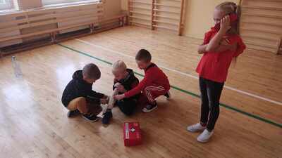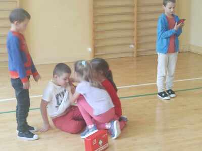 27 października w naszej szkole uczniowie klasy pierwszej wzięli udział w akcji ,,Ratowniczek". Pokazali najmłodszym uczniom naszej szkoły scenki jak radzić sobie w przypadku złamania ręki i poparzenia nogi substancją żrącą. Pierwszaki wspaniale wcieliły się w swoje role a najmłodsi dowiedzieli się jak trzeba reagować w danej sytuacji.