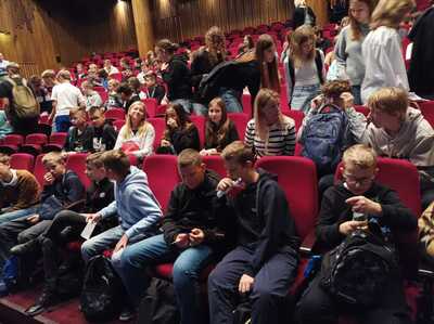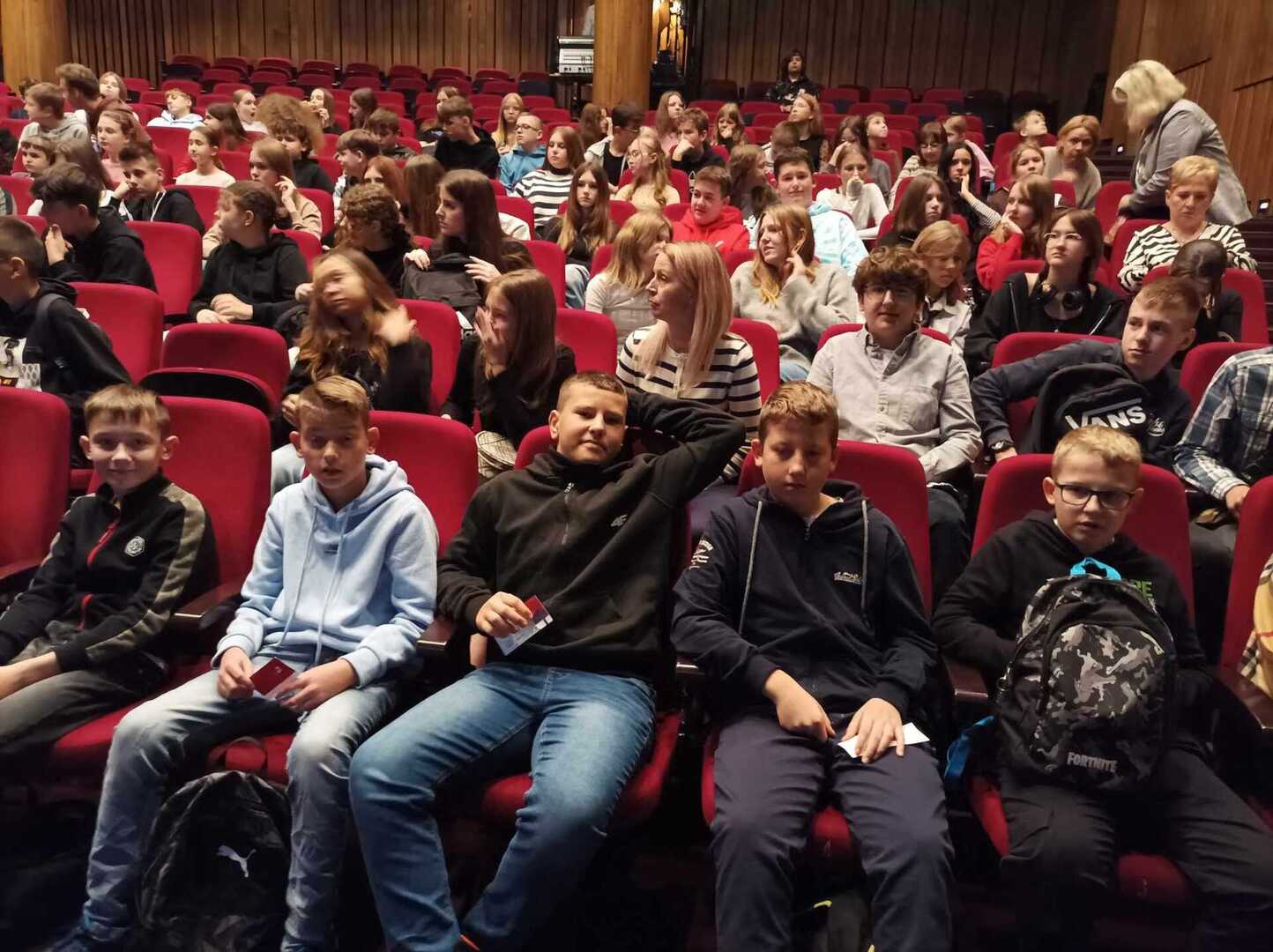 27.10.2023r. uczniowie klas IV-VIII wraz ze swoimi wychowawcami wybrali się do Teatru Powszechnego im. Jana Kochanowskiego w Radomiu na spektakl ,, Zemsta". Sztuka w nowoczesny sposób oddała treść słynnej komedii Aleksandra Fredry. Była to doskonała okazja do powtórki lektury obowiązkowej oraz sposobność do miłego spędzenia czasu we wspólnym gronie, co bardzo sprzyjało integracji naszej szkolnej społeczności😃