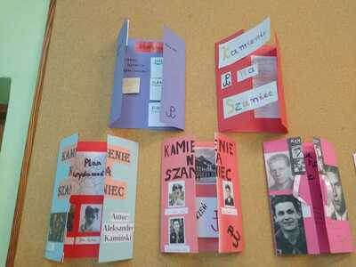 Uczniowie klasy VIII omawiali lekturę Aleksandra Kamińskiego,,Kamienie na szaniec". Wykonali własne lapbooki, czyli tzw. „książki stworzone na kolanie", które okazały się strzałem w dziesiątkę!