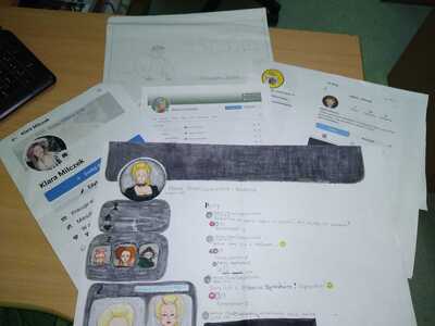 Makiety, facebookowe profile bohaterów literackich, lapbooki