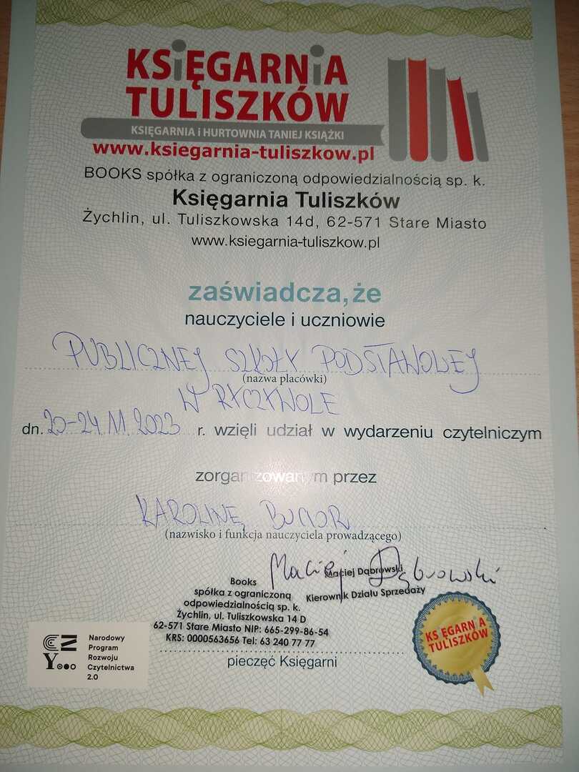 Jednym z planowanych działań projektu, wspierających rozwój czytelnictwa wśród dzieci był kiermasz książek zorganizowany w szkole w dn. 20-24.11.2023. Dziękujemy wszystkim za wzięcie udziału w akcji