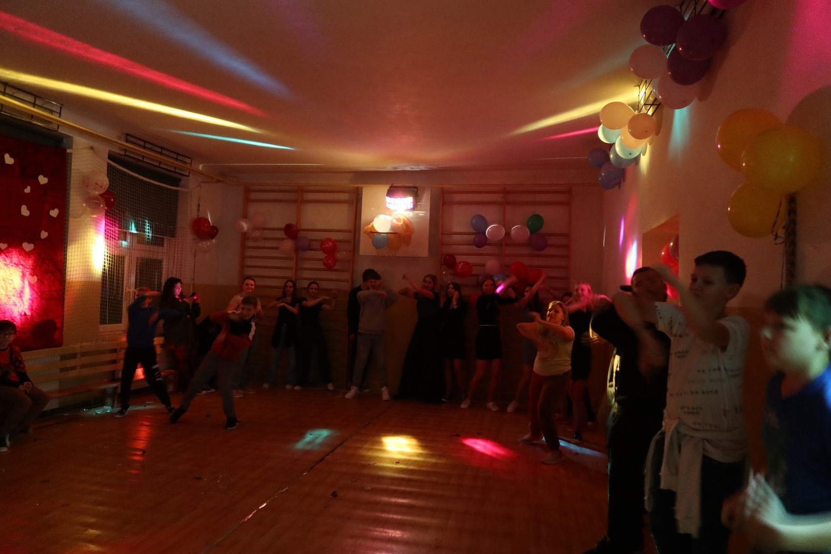 W piątek 9 lutego od samego rana dzieciom towarzyszyło wiele emocji i wrażeń. Sala gimnastyczna wyglądała inaczej niż zwykle, zamieniła się w prawdziwą salę balową. Udekorowana kolorowymi balonami, łańcuchami, błyszczącymi ozdobami zachęcała do szampańskiej zabawy - najpierw młodszych pociech, a później naszej "młodzieży".