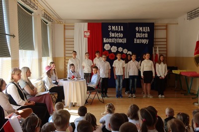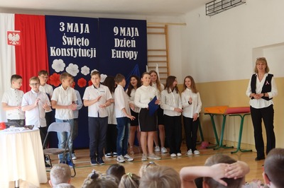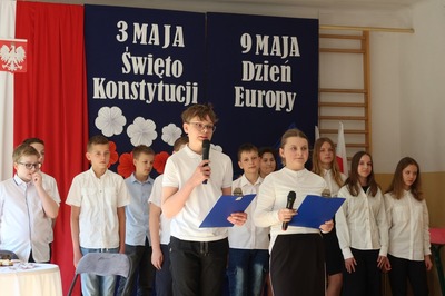 W ostatni piątek kwietnia w naszej szkole miała miejsce uroczysta akademia przygotowana przez uczniów klasy szóstej pod opieką pań: M. Pietrzyk, H. Najdy i H. Boryczki. Akademia upamiętniała Święto Konstytucji 3 Maja oraz Dzień Europy.