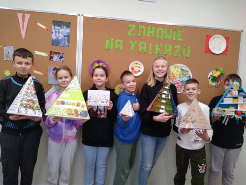 Uczniowie kl. V wspólnie z wychowawcą rozmawiali na tematy: zdrowo się odżywiamy, piramida zdrowego żywienia oraz rola składników chemicznych dla organizmów w tym białek, cukrów, tłuszczy, soli mineralnych i wody. W formie plakatów przygotowali również karty menu ze zdrowymi posiłkami w restauracji. Wydali specjalny numer gazetki szkolnej „Zdrowe odżywianie”. Efekty swojej pracy uwiecznili prezentacją multimedialną pt. „ Jak dbać o zdrowie”