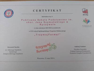w Publicznej Szkole Podstawowej im. chor. Jana Szymańskiego w Ryczywole