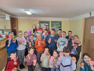 W czwartek 20 lutego 2025r. w naszej szkole odbyły się ,,walentynkowe" warsztaty. Panie z Koła Gospodyń Wiejskich z Kłody przeprowadziły dla klas II i III warsztaty rękodzieła pt: ,,Serce to najpiękniejsze słowo świata ". W pierwszej części warsztatów dzieci wysłuchały pięknego wiersza o walentynkach, a następnie wykonały walentynkowe karty dla osób, które najbardziej lubią spośród uczestników. Ruszyła więc ,,Poczta Walentynkowa", był też konkurs muzyczny z balonami. W głównej części twórczej każdy uczestnik tworzył własne, gipsowe serduszka. Na koniec wszyscy otrzymali serduszkowe lizaki i jabłuszka z napisem: ,, I LOVE YOU". Tego typu aktywność przyniosła dzieciom ogromną radość i satysfakcję z tworzenia. Wszyscy byli zachwyceni warsztatami. Bardzo dziękujemy Paniom z Koła Gospodyń Wiejskich z Kłody i zapraszamy ponownie do naszej szkoły. ❤️💕💓