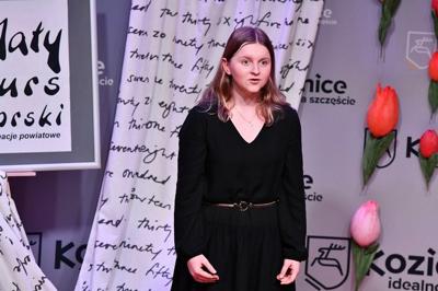 Uczennica klasy siódmej Hanna Strzelczyk reprezentowała naszą szkołę w eliminacjach powiatowych XLII Małego Konkursu Recytatorskiego, które odbyły się 17 marca w Centrum Kulturalno - Artystycznym w Kozienicach. Dzięki swojemu występowi zakwalifikowała się do Koncertu Finałowego. Będzie on miał miejsce w Radomiu 23 maja bieżącego roku. Gratulujemy Hani sukcesu i obiecujemy trzymać kciuki za jej występ w maju.