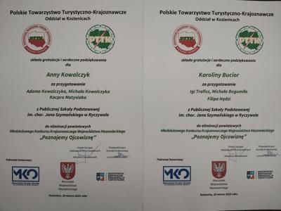29 marca w sali kameralnej Centrum Kulturalno-Artystycznego w Kozienicach odbyło się uroczyste podsumowanie etapu powiatowego Ogólnopolskiego Młodzieżowego Konkursu Krajoznawczego „Poznajemy Ojcowiznę”.
