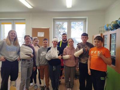 Udział uczniów w kursie pierwszej pomocy przedmedycznej realizowanym w ramach Gminnego Programu Polityki Zdrowotnej pt: "Uczmy się ratować życie - kurs pierwszej pomocy przedmedycznej dla uczniów klas VI z terenu Gminy Kozienice na lata 2022-2024"