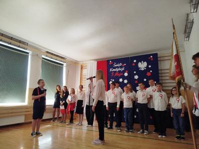 29 kwietnia w naszej szkole odbyła się uroczysta akademia z okazji 234 rocznicy uchwalenia Konstytucji 3 Maja. Uczniowie klasy V i VI poprzez przygotowany montaż słowno-muzyczny starali się przybliżyć wszystkim to ważne wydarzenie z historii naszego kraju. Młodzi artyści zabrali społeczność szkolną w podróż w czasie przez historię naszego kraju, prezentując fascynujące informacje dotyczące uchwalenia tej ważnej dla naszego narodu konstytucji. Ich staranne przygotowanie, nie tylko ożywiło przeszłość, ale także podkreśliło wagę tego wydarzenia dla kształtowania naszej tożsamości narodowej.